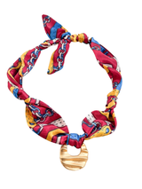 Each scarf necklace is truly one of a kind — featuring a hand-selected vintage pendant paired with a soft, patterned scarf. The gold pendant adds a bold yet timeless touch, while the adjustable design lets you wear it your way: around the neck, in your hair, or tied to your favorite bag.